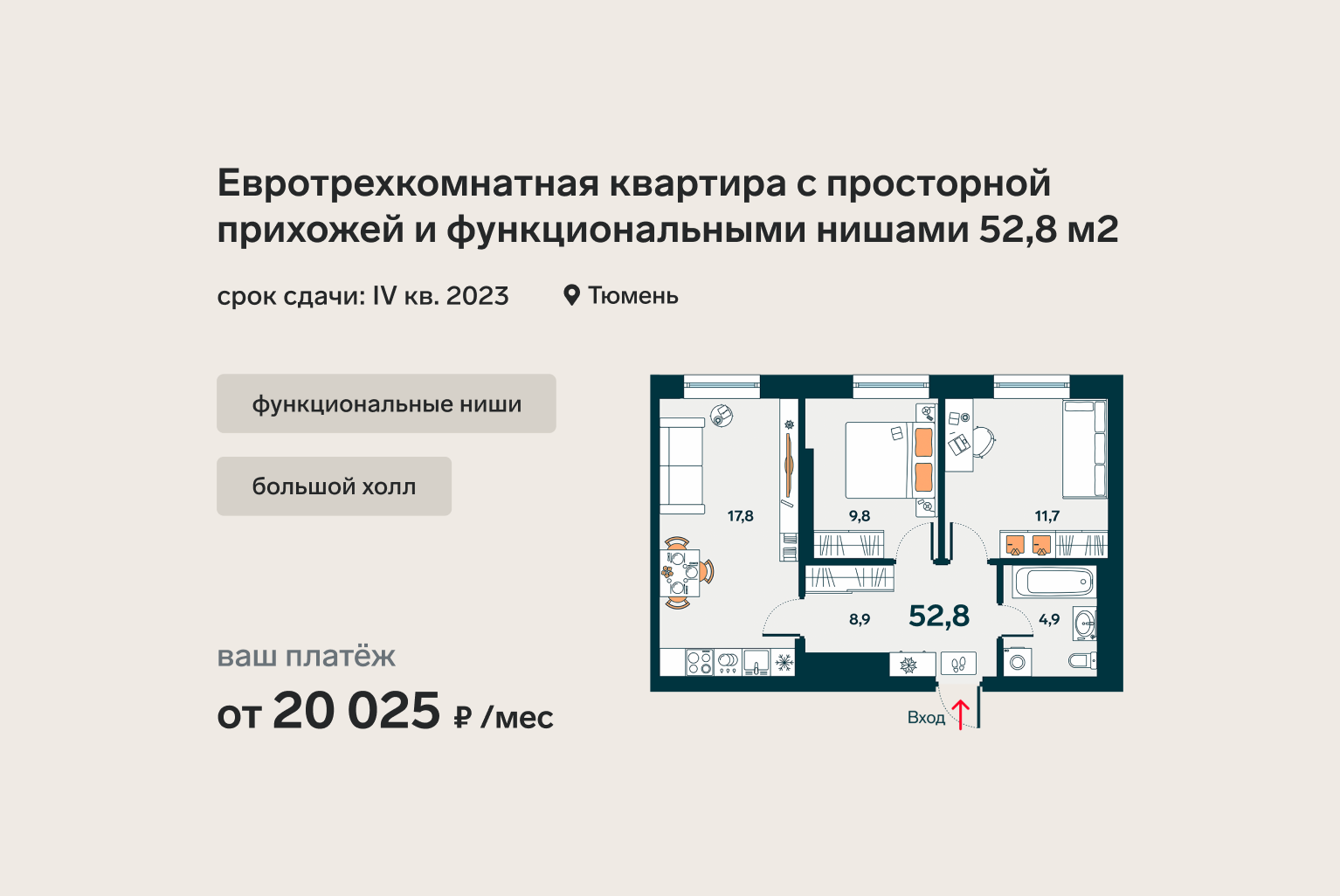 Ответьте на вопросы и узнайте стоимость этой Евро-3комнатной квартиры